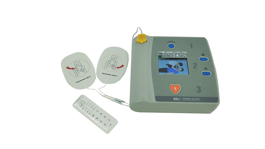3. 便捷式设计,无需打开机盖可开机使用。且培训电极片可与 AED 训练机预连接,无需后续连接;模拟机重量1.2kg。